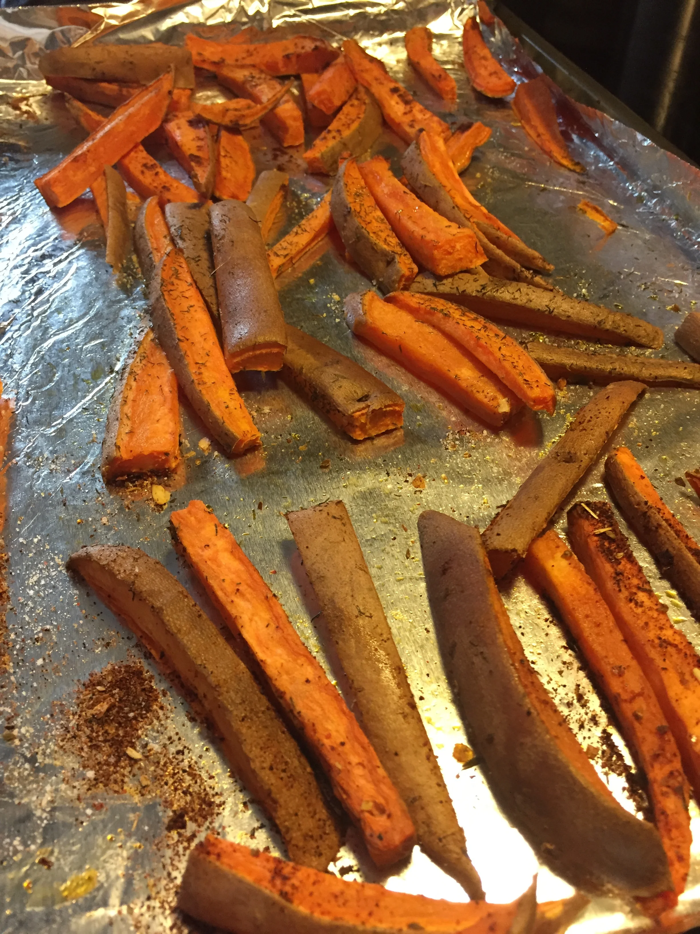 Sweet potato fries - as simple as slicing a sweet potato, tossing with olive oil and seasoning to bake! Try a chili spice, dill, cumin or curry on your next batch!